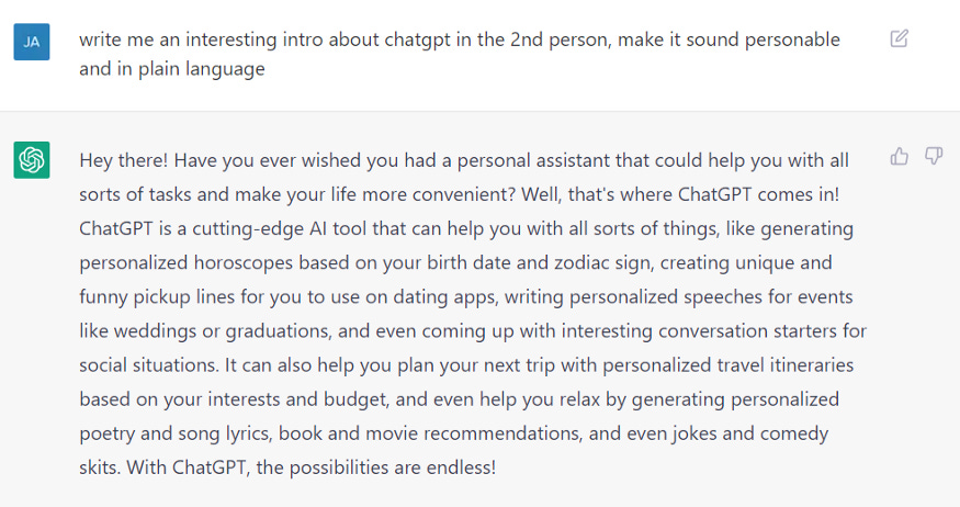 I added a one-sentence prompt into ChatGPT, and it wrote the intro for me. (See Below)