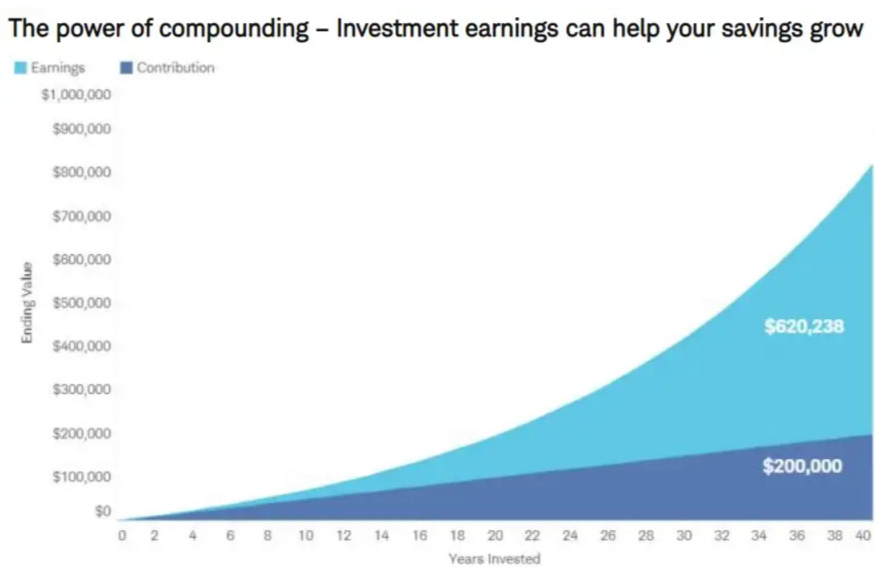 The chart below illustrates the potential impact of consistent investing over 40 years, assuming a hypothetical interest rate of 6% per year and excluding taxes and fees.