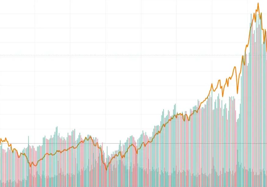 The orange line on the chart represents the S&P 500, while the candle chart shows the performance of U.P.S. stock from 1999 to 2022.