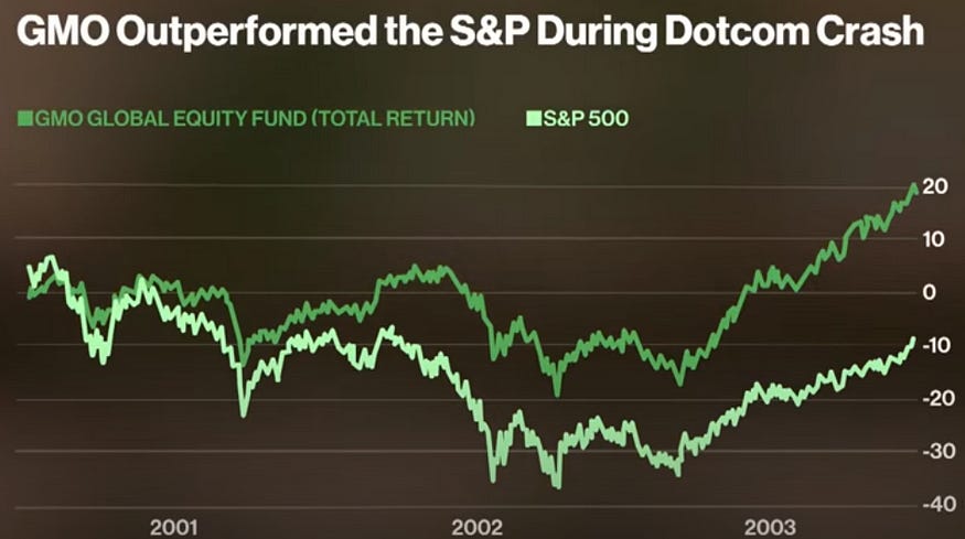 Grantham said, “We (GMO Global Equity Fund) didn’t lose money in 2000. We didn’t lose money in 2001, and we did not, by the skin of our teeth, lose money in 2002. So by the time the S&P was down 50%, we had three up years. So that made the firm and drew in the assets”.