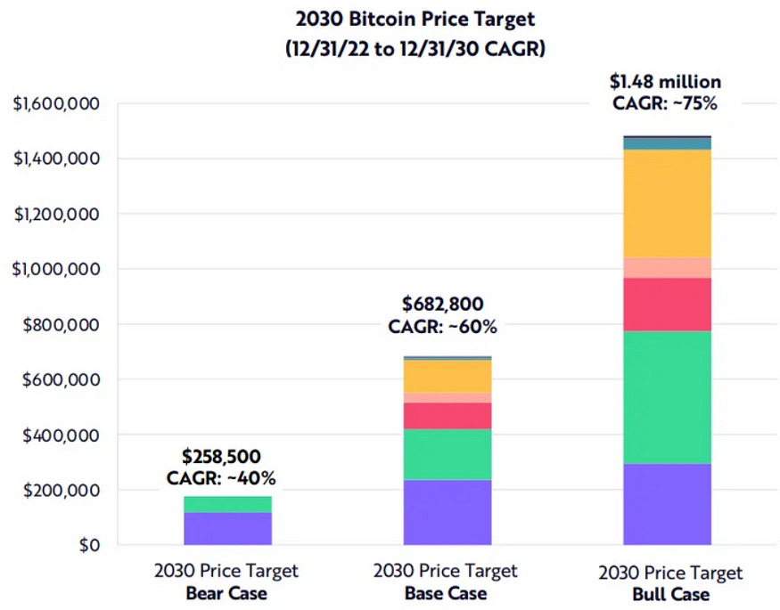 As a result of their forward-looking indicators and the current trend of compound annual growth rate, ARK says the price of one Bitcoin will exceed $1 million by 2030.