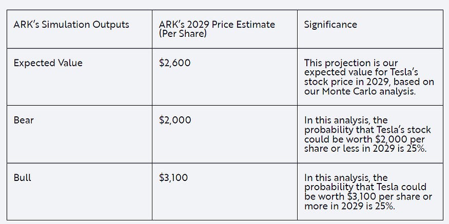 “An unexpected event, such as Elon Musk’s sudden departure from the company, or a natural disaster or pandemic, could throw these outcomes off considerably.”