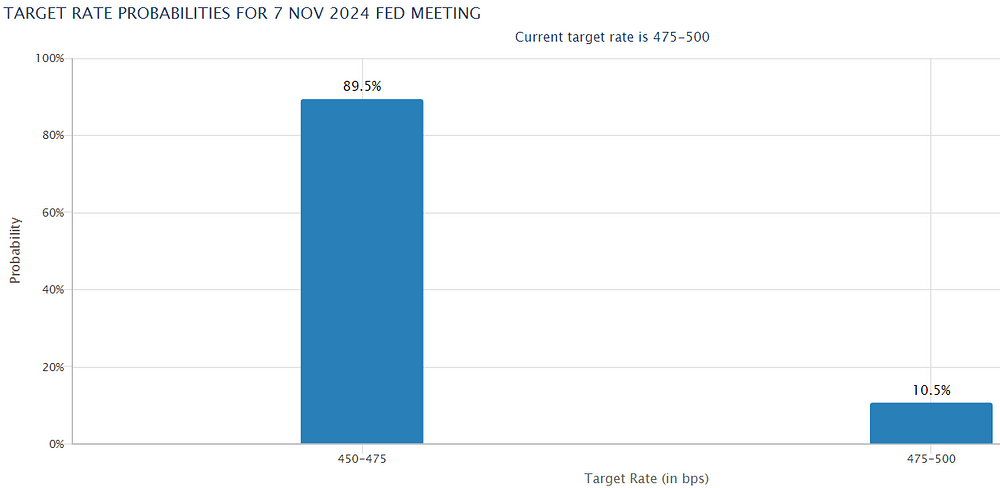 Interest rate traders predict another 25 basis points cut at the next Fed meeting just two days after the election.