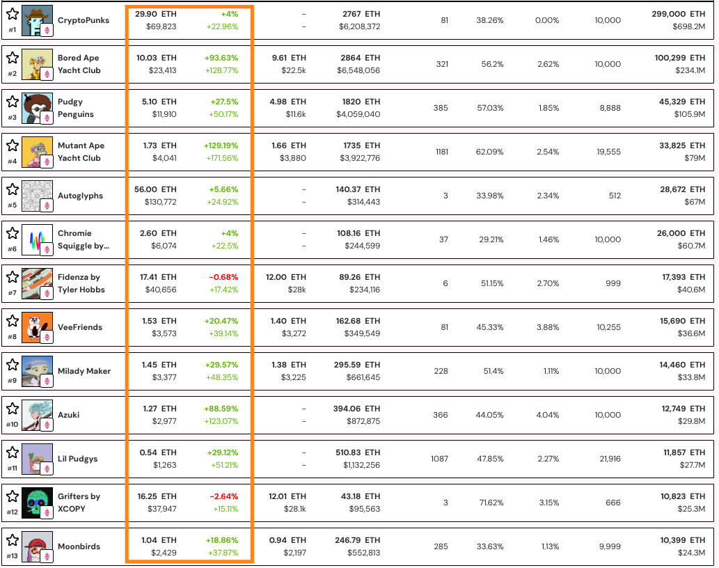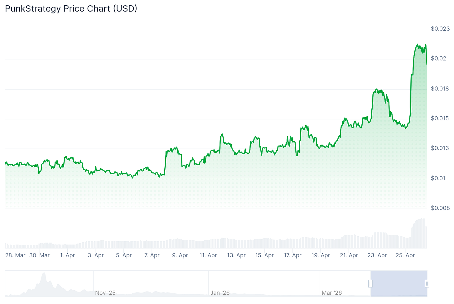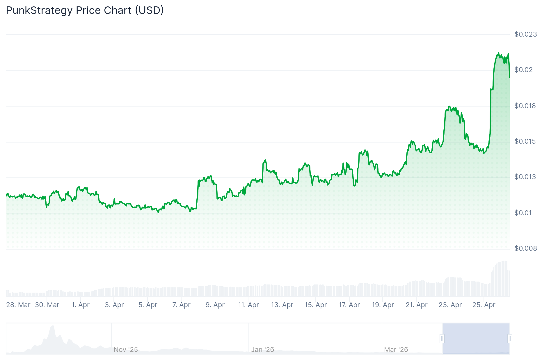 The monthly chart below shows it outpacing both Ethereum and Bitcoin in an uptrend, while still sitting at a tiny $18 million market cap, all while being pegged to the value of CryptoPunks.