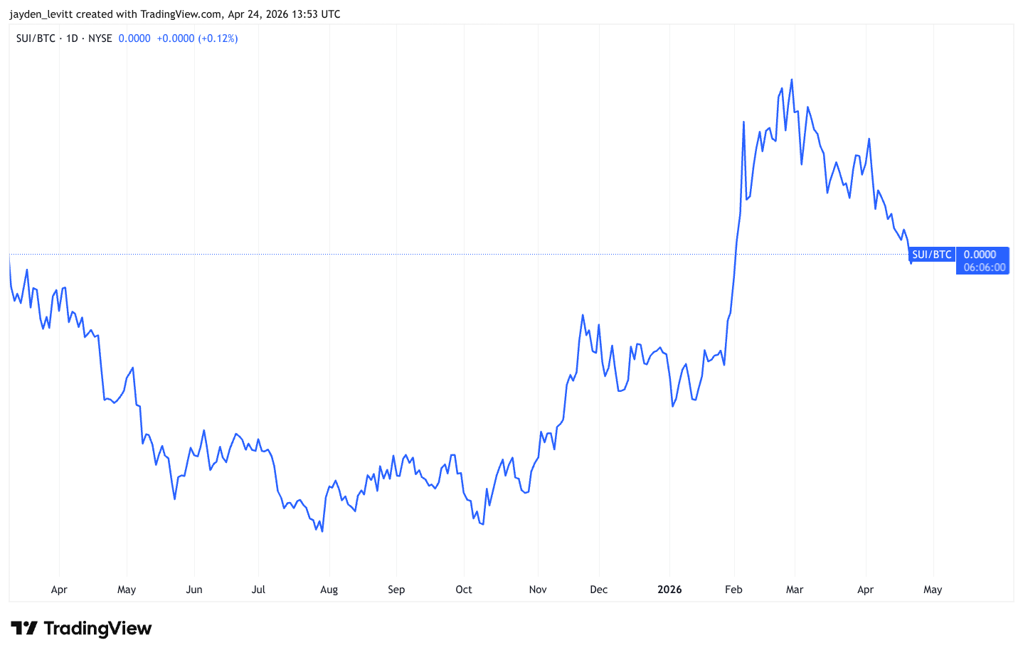 If you pair SUI against Bitcoin over a longer time frame, it outperforms, mainly because it’s smaller, less liquid, and still tied to Bitcoin, which means the moves tend to be more aggressive in both directions.