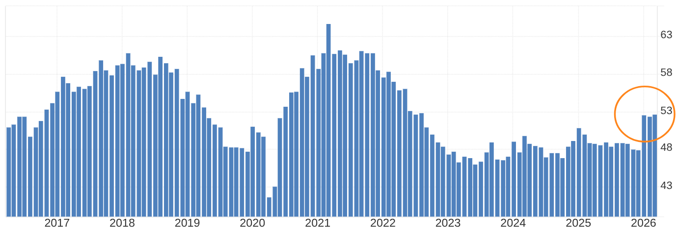 The ISM is showing a strong uptick for three months in a row, with the next update on the first Monday of each month. You can see clear anecdotal evidence that Kevin Warsh is a political weathervane who will do whatever Trump wants. Or as Elizabeth Warren called him, “Donald Trump’s Sock Puppet”.