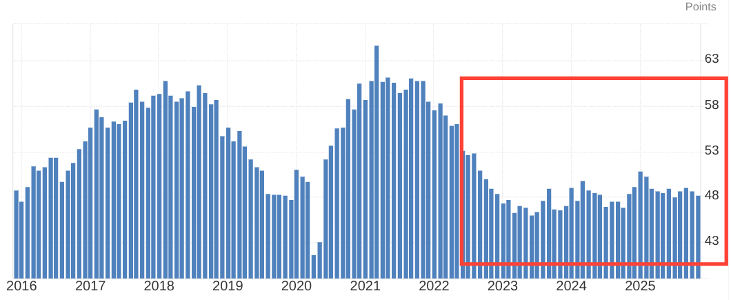 The ISM is a sentiment survey sent to 4,000 supply chain professionals who answer questions about the health of their businesses, which is laser sharp at gauging the economy's health.