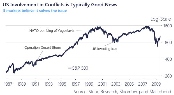 Everyone thinks US involvement in Middle East conflicts is a negative. But look at the immediate market reactions to Desert Storm and the 2003 Iraq invasion—parabolic. Sometimes, the “deal sealed” by the US is exactly what markets crave. Challenge the variant perception.