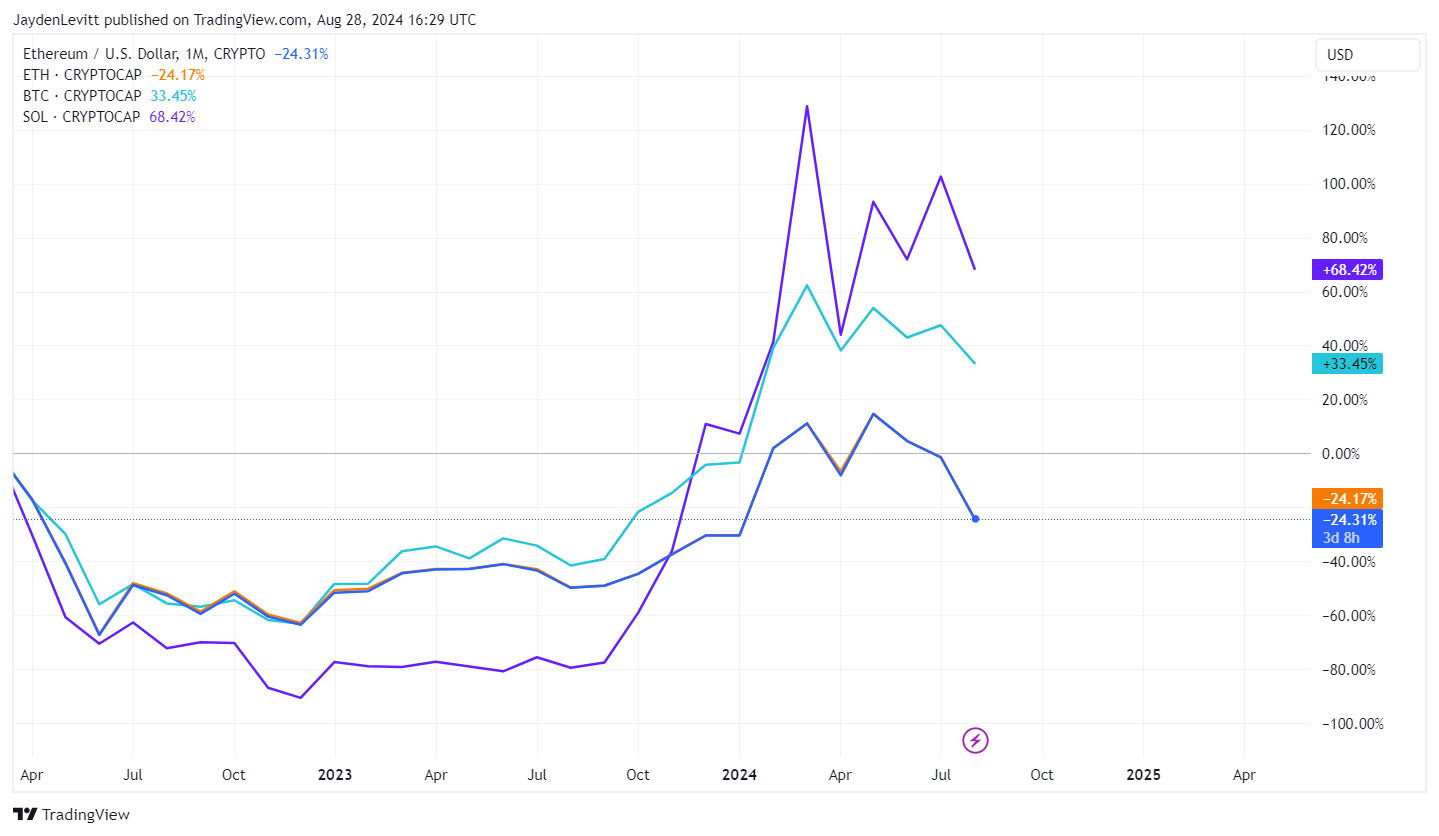 Having said all that, my Bitcoin position is tiny compared to what I hold in Ethereum and Solana because these assets are rise and fall optically together.