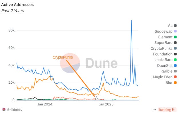 OpenSea is currently leading the way in trading volume, and if you look at the chart below, you’ll see that slight bump in CryptoPunks activity and the ripple effect it created across the entire market straight after.