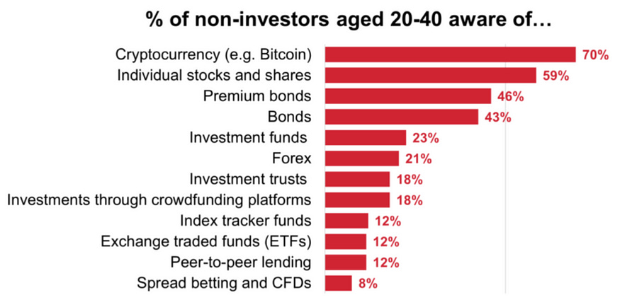 In contrast, only 59% could name individual stocks and shares as investment opportunities.
