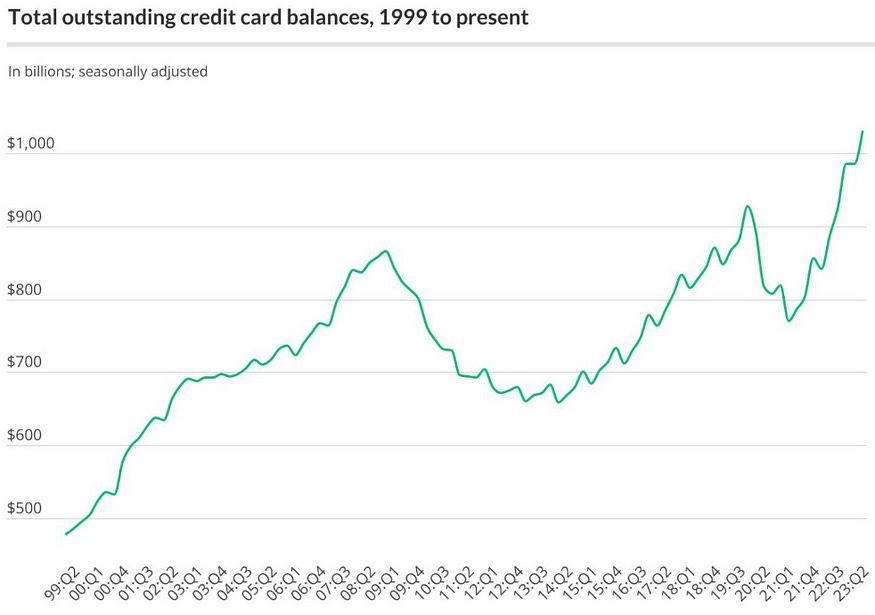 Credit card debt is heading to Valhalla, and savings rates are dropping faster than a broken elevator.