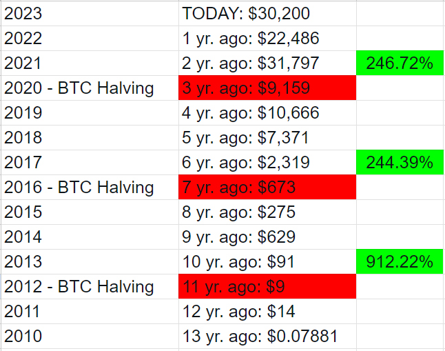 When you see the price movement after each halving event, it becomes evident that Ivan’s bullish strategy following the halving is highly logical. The evidence highlighted in green below strongly supports his approach.
