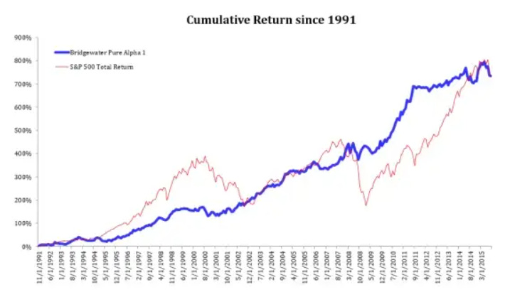You can see in the below chart the Bridgewater Associates’ returns compared to the S&P 500, which is an index of the largest 500 companies in the United States.