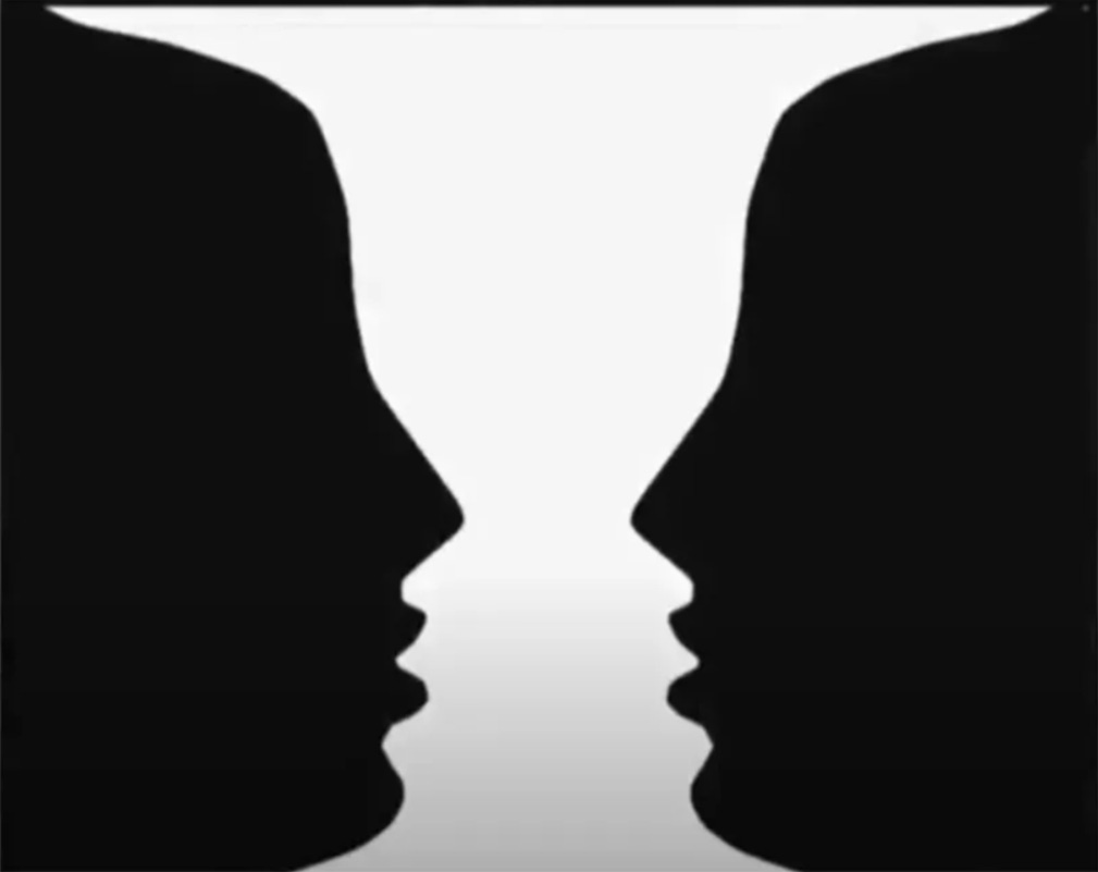 An ambiguous illusion is a type of mind-bending illusion that plays tricks on your brain. It’s the kind of illusion that can make a picture of a vase look like two faces staring at each other (pictured top of the blog), depending on how you see it.