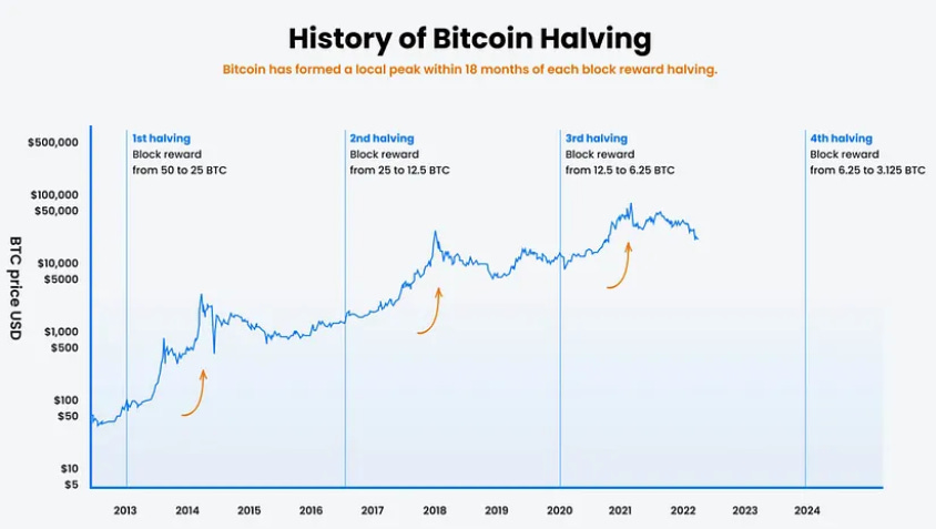 Bitcoin’s halving event occurs every four years when the reward for mining Bitcoin transactions is cut in half.