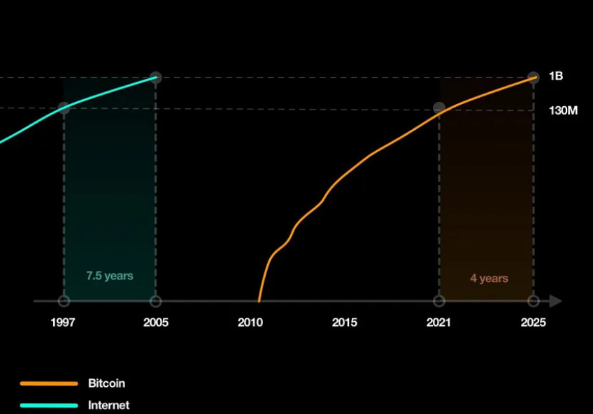 However, the most significant difference is that the Bitcoin adoption rate is much higher than the Internet.