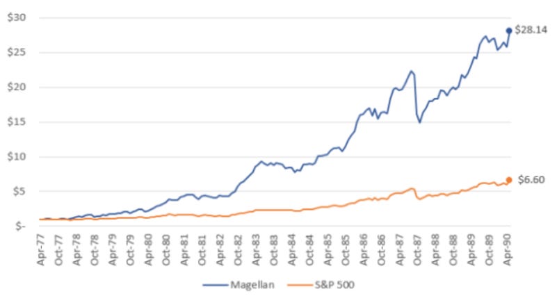 From 1977 to 1990, he generated an average return of 29.2% yearly for those who invested in his fund. That’s pretty impressive, considering it was more than double what the S&P 500 stock market index returned during the same period.
