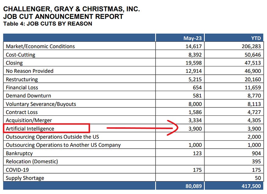 Job losses to AI made up 1% of losses in May, which is relatively high for a new technology fresh out of the box.