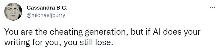 You’re the Cheating Generation, and You’ll Still Lose if AI Does Your Writing for You (Michael Burry)